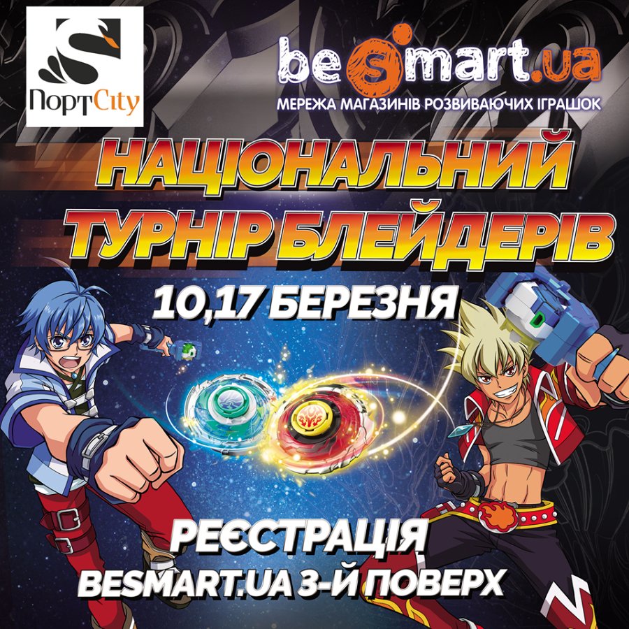 10 та 17 березня у ТРЦ «ПортCity» відбудеться національний турнір блейдерів, організований спільно з магазином розвиваючих іграшок «BeSmart», що знаходиться на 3 поверсі комплексу. В турніри візьмуть участь не лише професіонали блейдери з Луцька, а й учасники з інших міст.