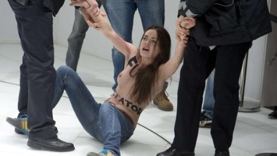 Активістки скандально відомого українського незареєстрованого суспільно-політичного руху FEMEN влаштували акцію на промисловому ярмарку в Ганновері в той час, коли її оглядали канцлер ФРН Ангела Меркель і президент Росії Володимир Путін, ‒ пише Newsru.com.