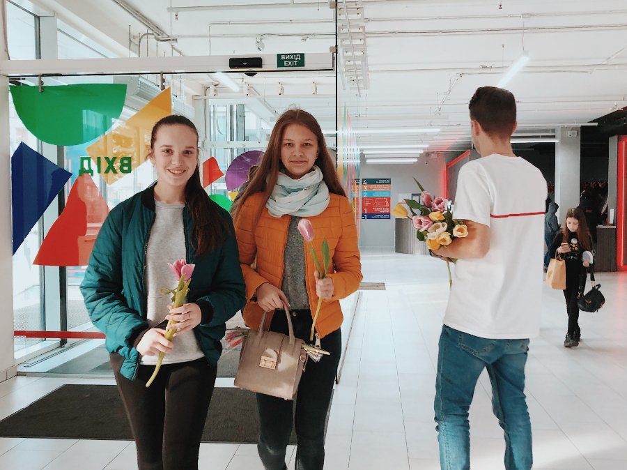 8 березня розважальний центр «Промінь» зробив приємність своїм відвідувачам і протягом дня тут дарували дівчатам та жінкам квіти.