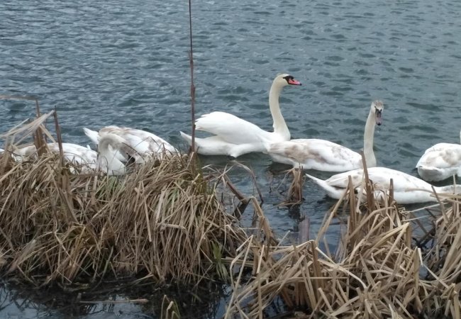 "Лебедина сімейка з малятами в жовтні 2018 і в березні 2019.... Вже усі дорослі красені - лебеді. Перезимували всі та повернулися на рідні стави. Шануймо ж цю славну сімейку", - йдеться у дописі.