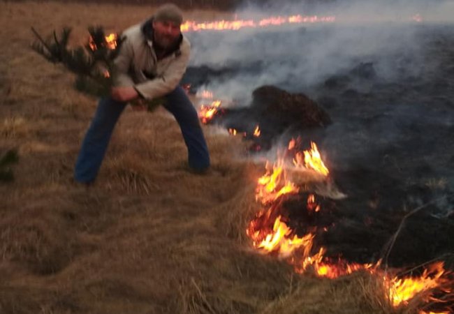 Кілька жителів Люблинецької ОТГ власними силами погасили масштабну пожежу - невідомі підпалили суху траву, від чого загорілось поля.