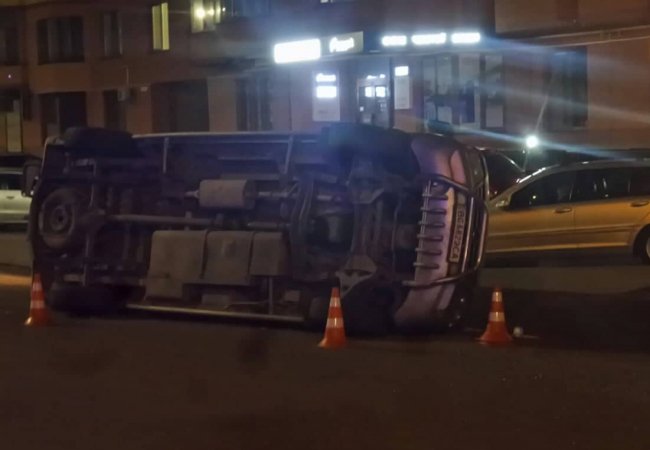 Від удару мікроавтобус Mercedes Sprinter перекинувся на бік.