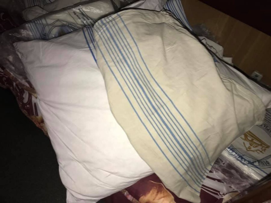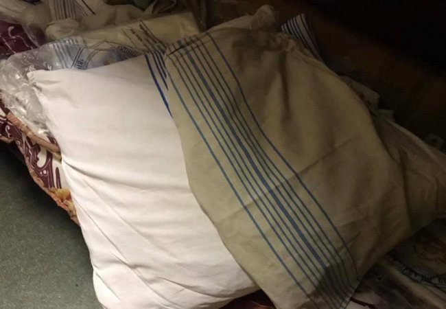Сіра тряпка зверху - це наволочка, яку видали мені, а знизу наволочка на подушці начальника поїзда...
