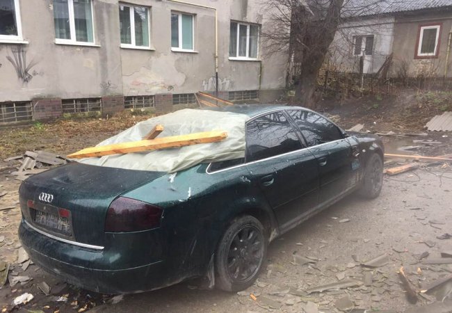 "Знесло дах на машину...місцеві кажуть, хвилин 20 тому...добре, що не на людей", - йдеться у дописі.