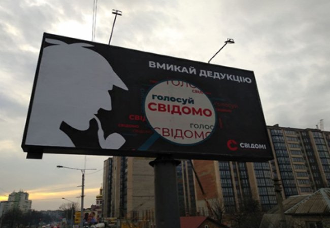 У Луцьку з’явилися білборди із зображенням літературного персонажа Шерлока Холмса, які закликають вмикати дедукцію і голосувати свідомо. Ініціатором розміщення креативних бордів є Громадянський Рух «СВІДОМІ».