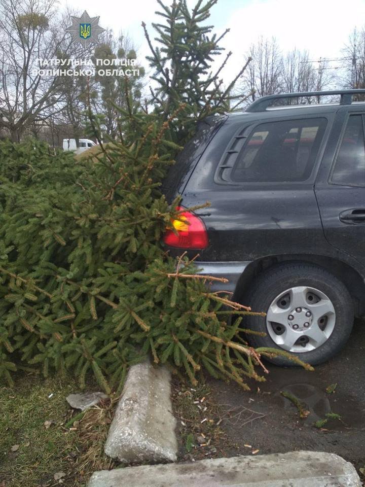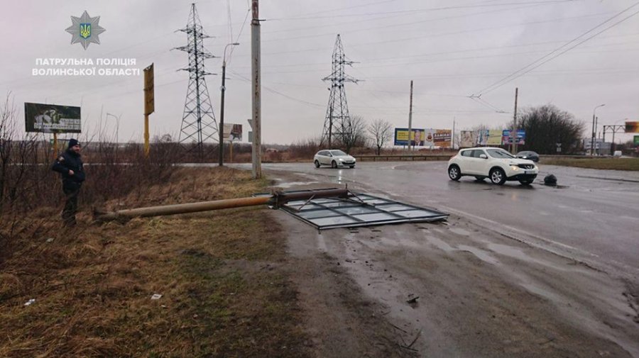 А по вулиці Рівненській не витримав вітру і впав на дорогу рекламний щит. Біля дитячої лікарні, по проспекту Відродження, дерево впало прямо на припаркований автомобіль Hyundai.