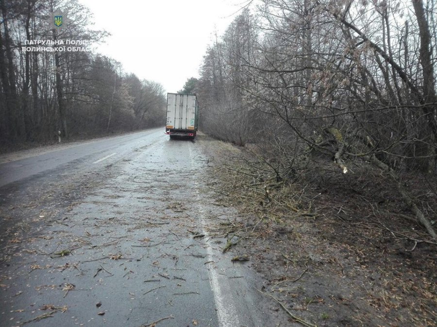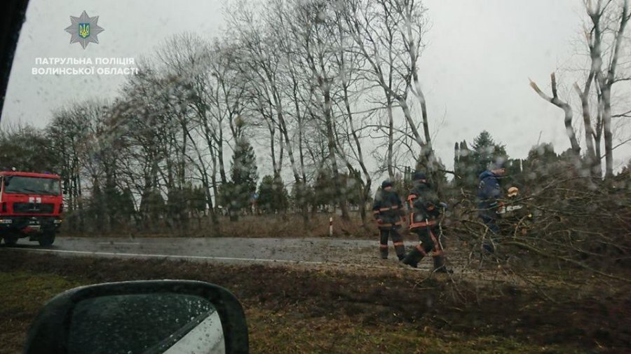 Як повідомляють інспектори, на дорозі Н-22 лежить чимало повалених дерев. Патрульні відтягують їх на узбіччя, на інших ділянках працюють бригади рятувальників.