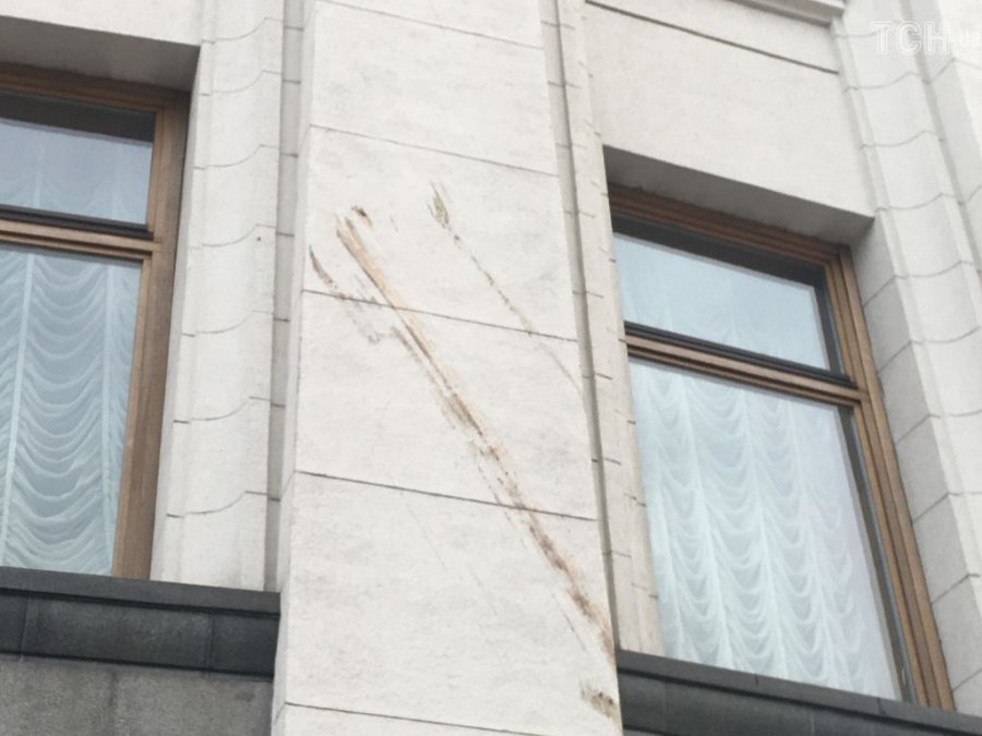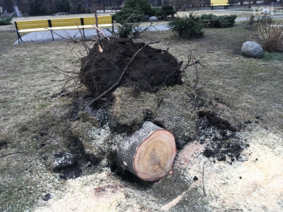 Як передає ТСН, 25-метрове дерево залишило подряпини на фасаді будівлі. З двору парламенту смереку вже прибрали – розпиляли за півгодини.
