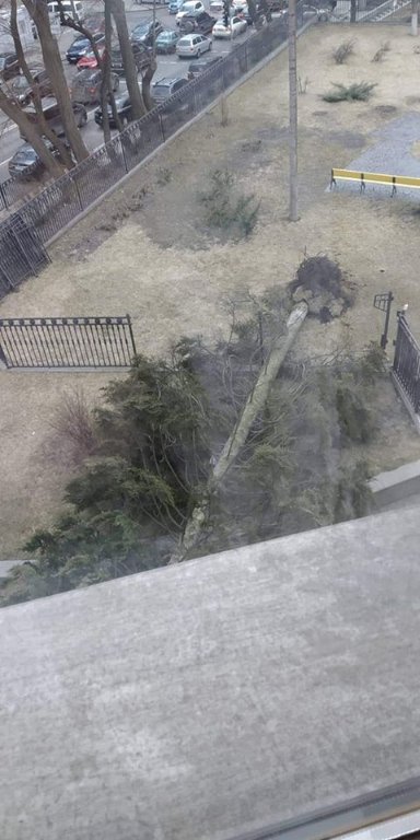 В понеділок, 11 березня, на будівлю Верховної Ради, впала височезна смерека. Причиною падіння називають шквальний вітер.