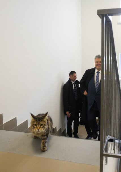 Петро Порошенко разом із військовими за традицією, перш, ніж зайти до гуртожитку, запустили до приміщення кота. Президент та військовослужбовці оглянули приміщення нового гуртожитку та ознайомилися з умовами проживання. Глава держави поцікавився в яких умовах контрактники проживали до цього і чи задоволені вони новою оселею.