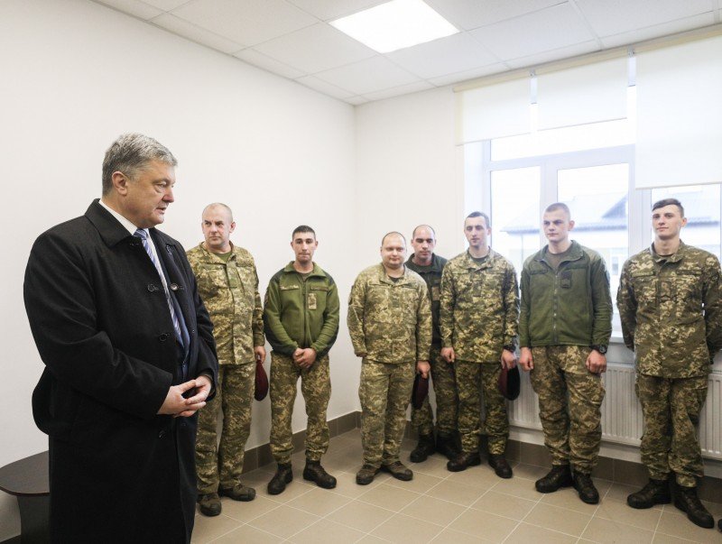 Петро Порошенко оглянув приміщення одного з чотирьох нових гуртожитків та поспілкувався із військовослужбовцями, які будуть в них жити. Також Президент відвідав їдальню та скуштував обід разом з військовими.