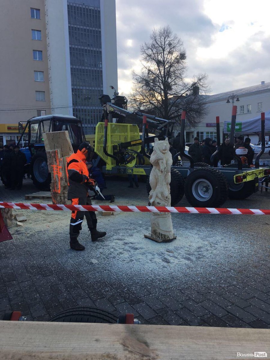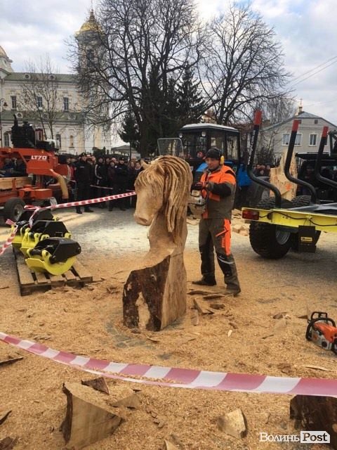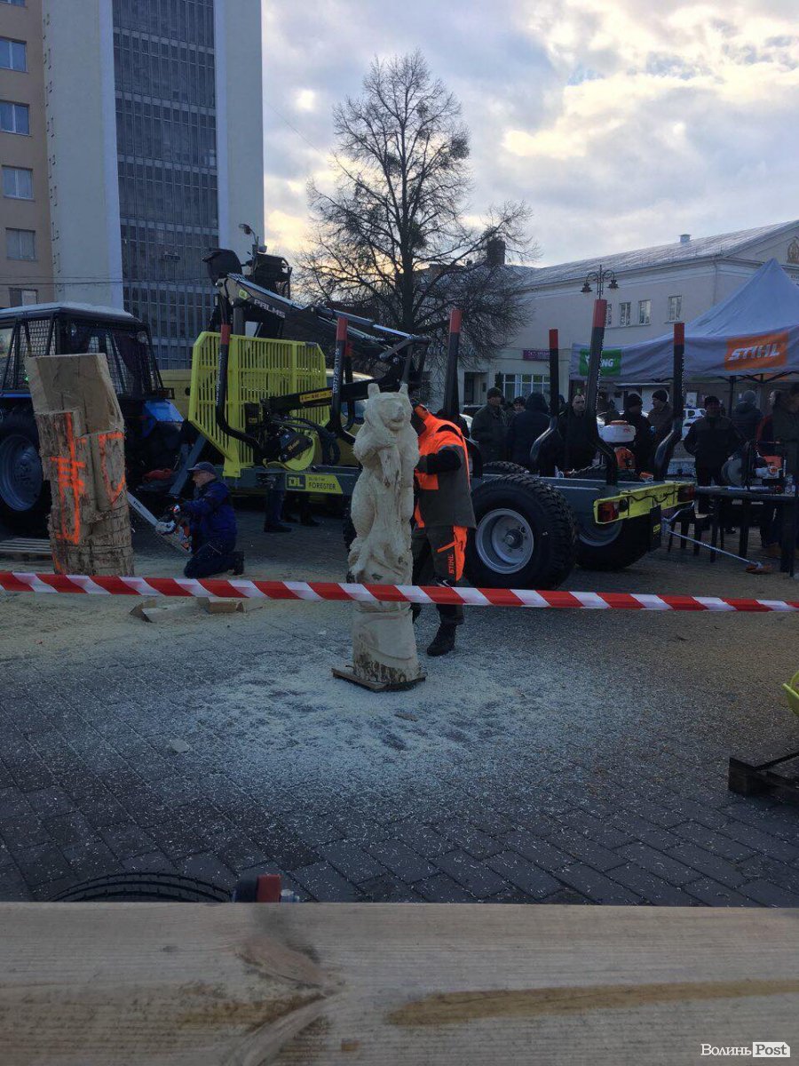 Поки триває конференція, на вулиці вирізають бензопилами фігурки з дерева.