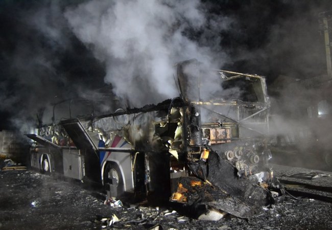 Існувала загроза перекидання полум’я на поруч розташовані автомобілі. Бійці ДСНС відразу подали на гасіння загорання вогнегасячі засоби. Вже о 01:13 пожежу було локалізовано, а о 01:55 повністю ліквідовано. Внаслідок пожежі вогнем повністю знищено автобус. Жертв та постраждалих немає.