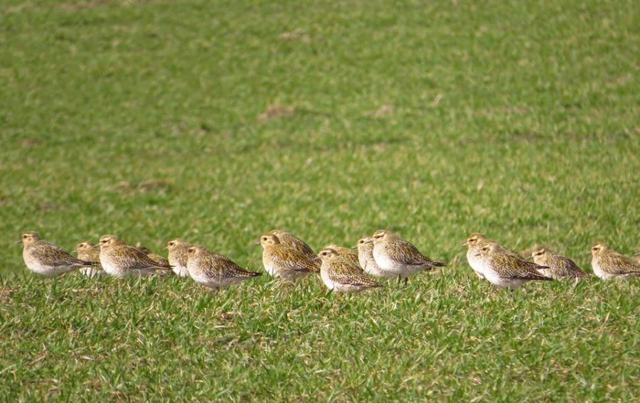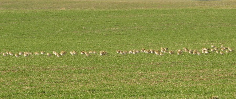 "Проїзджаючи велосипедами біля сількогосподарських полів ми побачили величезну зграю птахів (близько 130 птахів), що стояли на проростаючому пшеничному полі. 13.03.19, Ківерцівський район, околиці села Борохів", - пише Рудік.