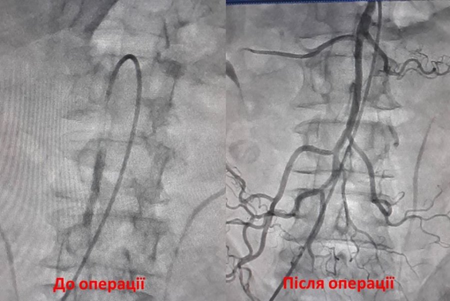 "Бригадою наших ендоваскулярних хірургів проведено надскладну операцію з приводу гострого тромбозу верхньої брижової артерії. Під контролем ангіографа здійснено тромбоекстракцію (видалили тромп) та відновили кровотік кишківника (провели балонну ангіопластику та стентування верхньої брижової артерії)", - йдеться у повідомленні.