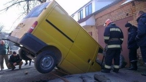 «Виявилось, що автівка стоїть на ручному гальмі. Водія попросили залізти в кабіну і знятися з «ручніка». Потім машина плавно виїхала на безпечну відстань від ями. Рятувальники остерігались, що край ями може обвалитись», ‒ зауважили в ДСНС.