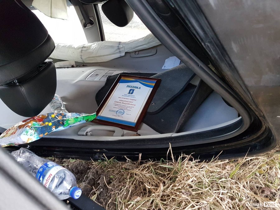 У понівеченій BMW Х5 знайшли подяку від Ради адвокатів Волинської області на ім’я Ніколаєнка Олеся Андрійовича.