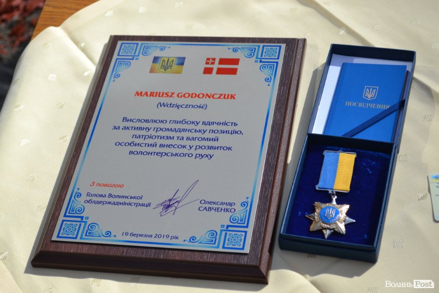 Меценат Маріуш Годончук – громадянин Республіки Польща, каже, що не планував робити добру справу «на показ», а лише хотів допомогти і від щирого серця зробити подарунок українським бійцям. За такий вчинок Олександр Савченко нагородив благодійника почесною грамотою від ОДА і відзнакою «Патріот України».
