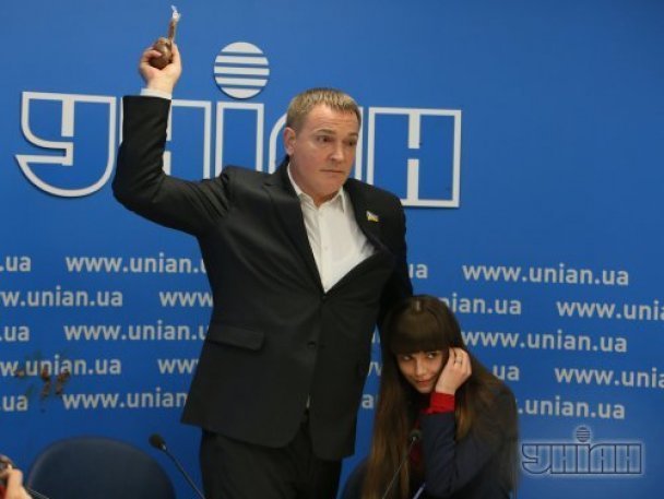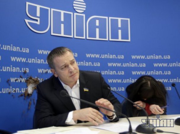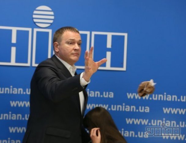 У народного депутата від Партії регіонів Вадима Колесніченка (на фото) під час прес-конференції у вівторок в Києві кинули пакетом з фекаліями.