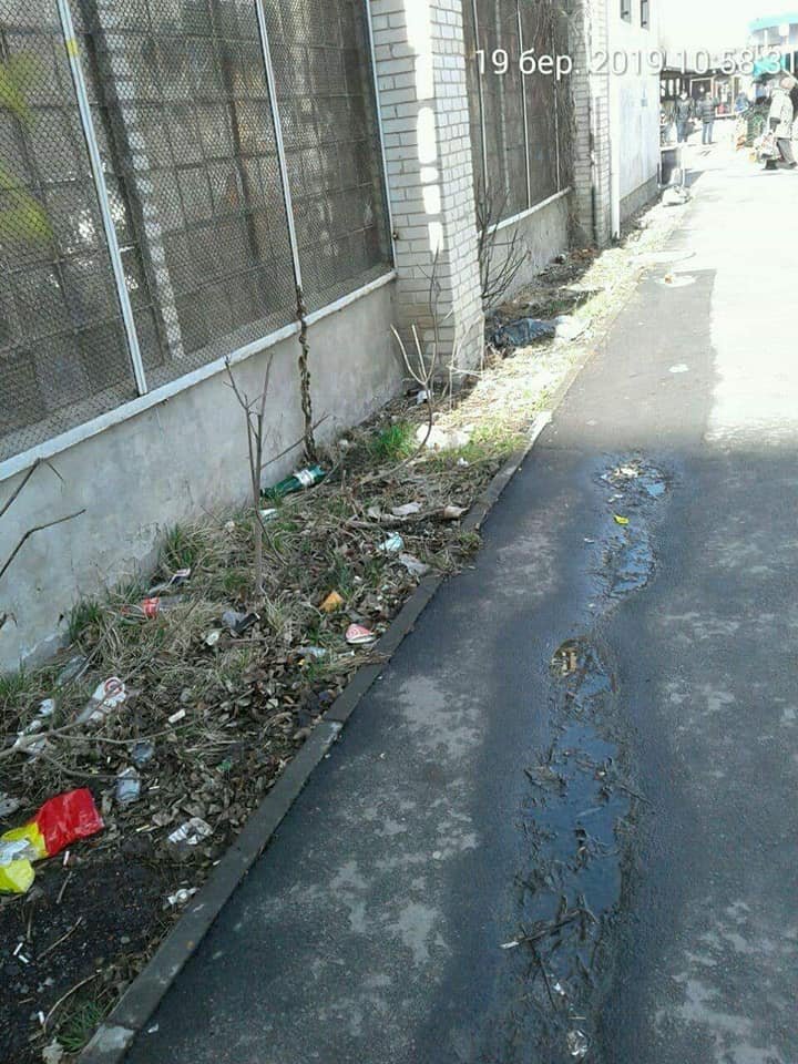 Вкрай занедбану прилеглу територію та антисанітарію виявив інспектор відділу контролю за благоустроєм та санітарним станом міста під час виконання своїх посадових обов'язків по пр. Соборності, 11, поблизу квіткового ринку.