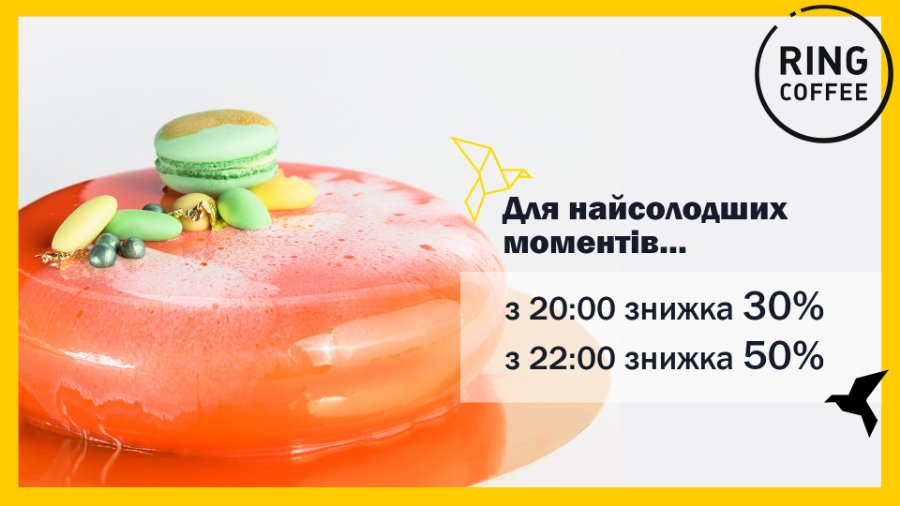 В Ring Coffee тепер можна купити торт зі знижкою 30% або 50%.
