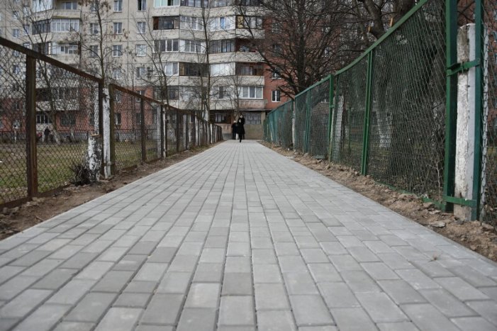 Практично завершено поточний ремонт пішохідних доріжок між школою №26 і дитсадком №19. Територію цієї школи багато людей використовували замість прохідного двору, йдучи через футбольні поля навпростець до ринку. Тепер тут обладнані пішохідні доріжки для перехожих, а шкільний стадіон можна буде відгородити.