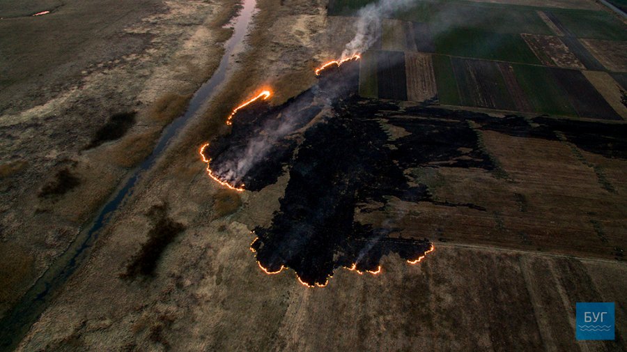 Згодом побачили і саму пожежу та зафіксували на камеру дрону горіння трави та її наслідки, - пише Буг.