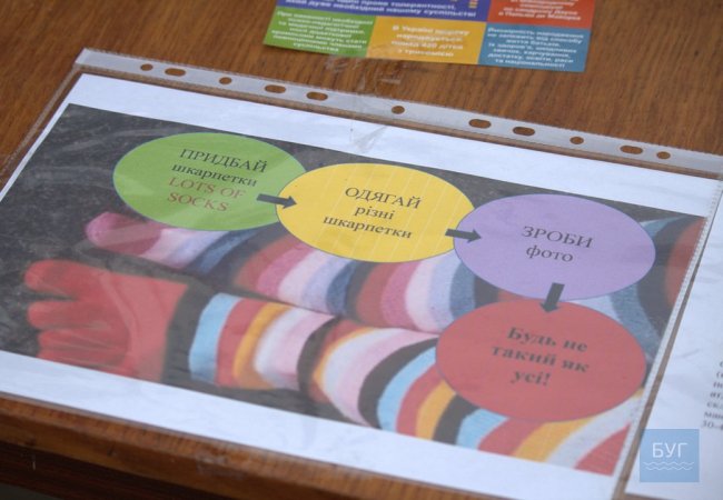 Кожен бажаючий міг придбати собі кольорові шкарпетки та допомогти “сонячній” дівчинці (так називають дітей з синдромом Дауна, – ред.) Софії Томчук. Під час акції зібрали 5 000 гривень.