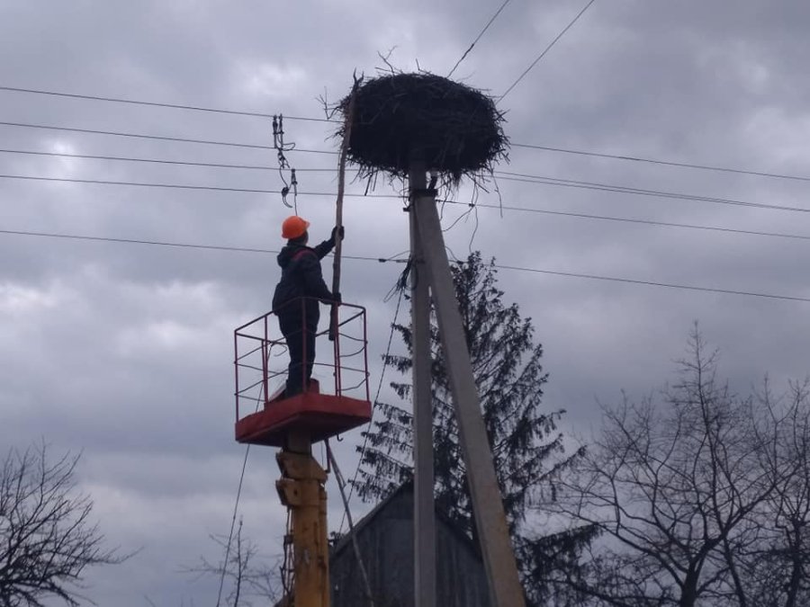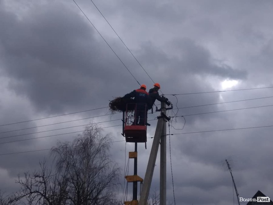 Волинські енергетики облаштовують гнізда для лелек. ФОТО