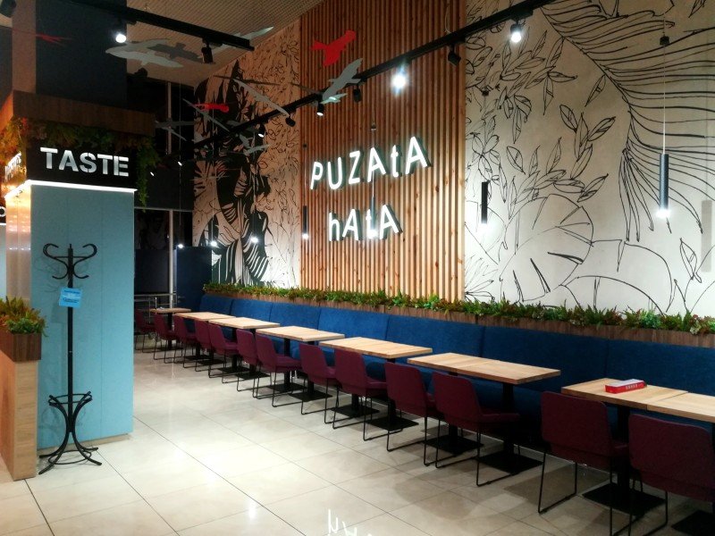 Ресторан «Пузата хата» у Луцьку займає більше половини 5 поверху центрального універмагу і може за раз нагодувати 130 людей.
