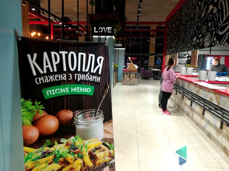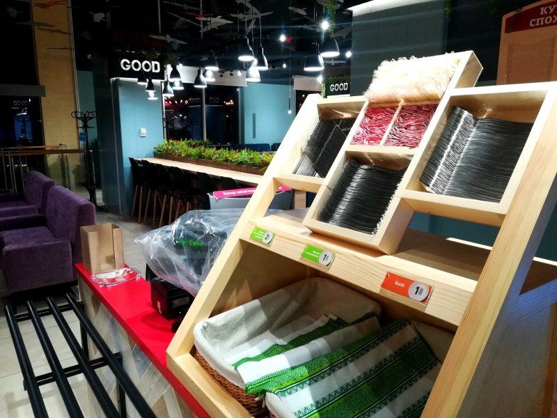 Тут – велика лінія роздачі, бар з алкогольними напоями, кавою і чаєм. Окремо – арт-галетеря, де наразі готується виставка луцької художниці Алли Харчук.