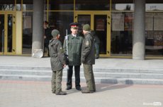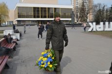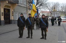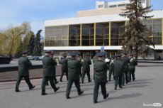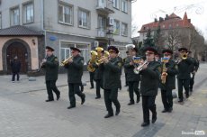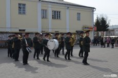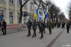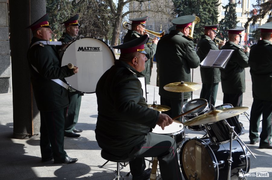 Урочистою ходою оркестр військової частини 1141 йшов від медичного училища вулицею Лесі Українки до Театрального майдану. Там організували флешмоб, у рамках якого грали патріотичні композиції і покладали квіти до стели загиблих Героїв Небесної сотні.