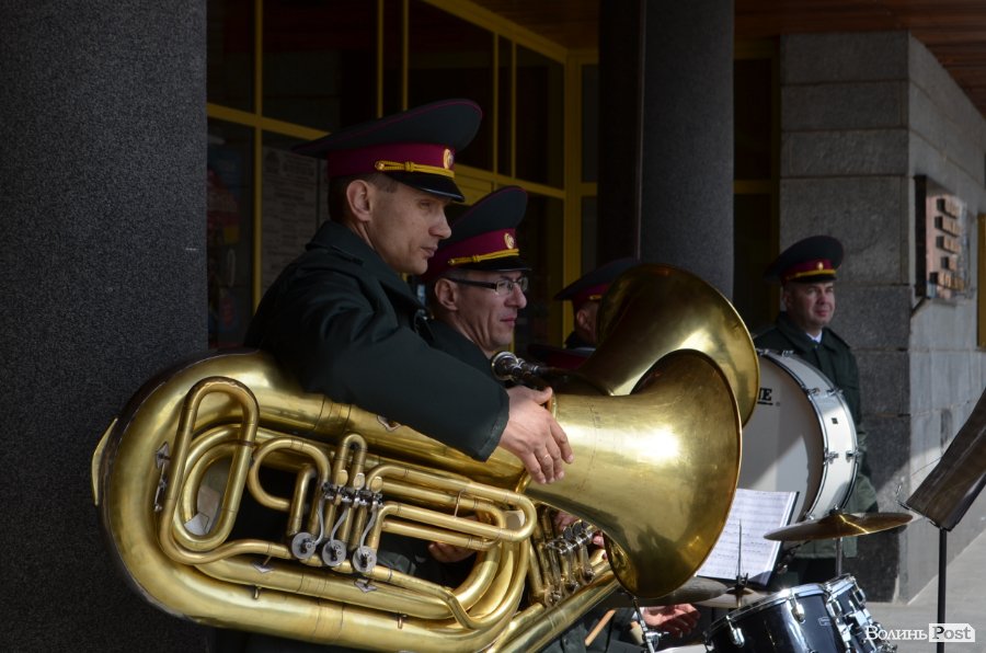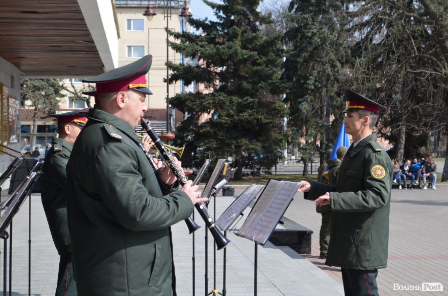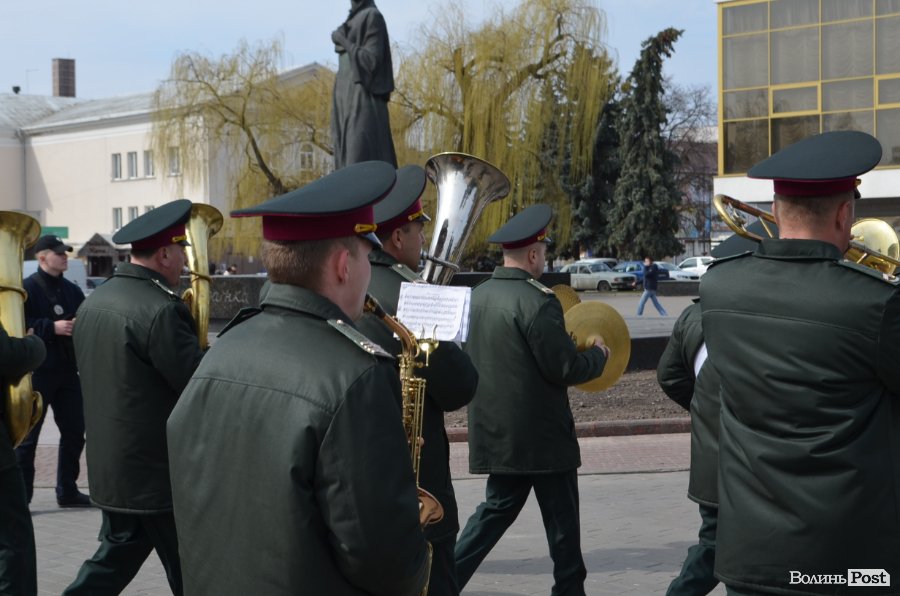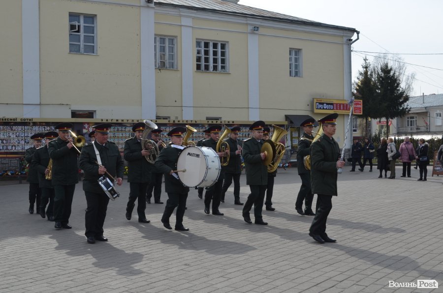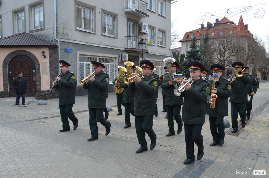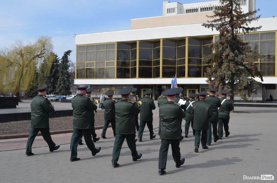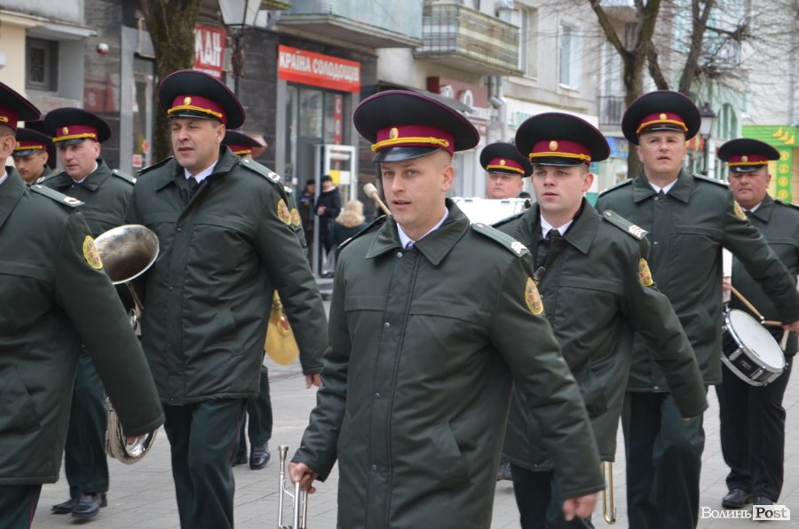 25 березня у Луцьку вулицею Лесі Українки марширував військовий оркестр з нагоди 5-ї річниці Національної гвардії України.