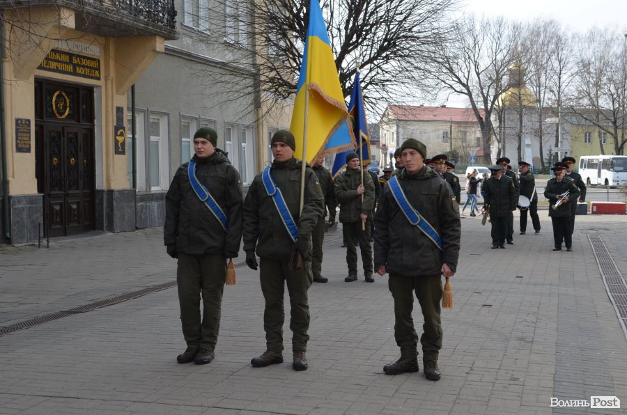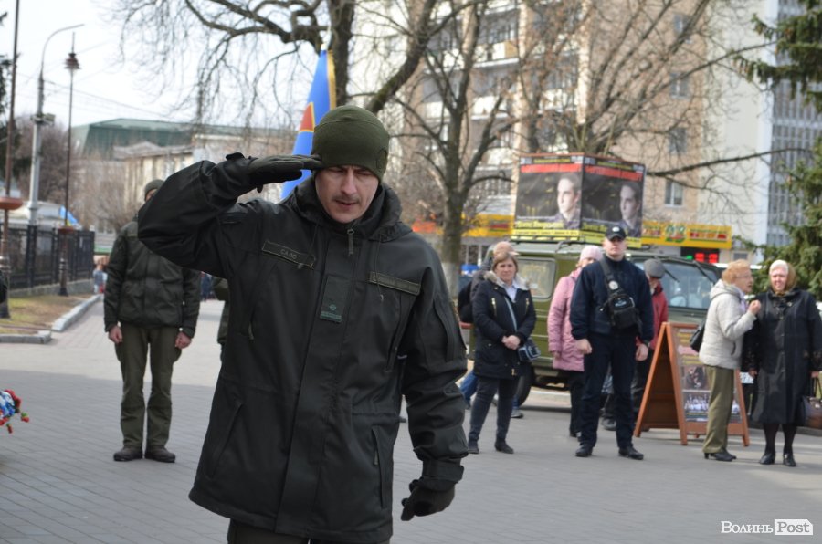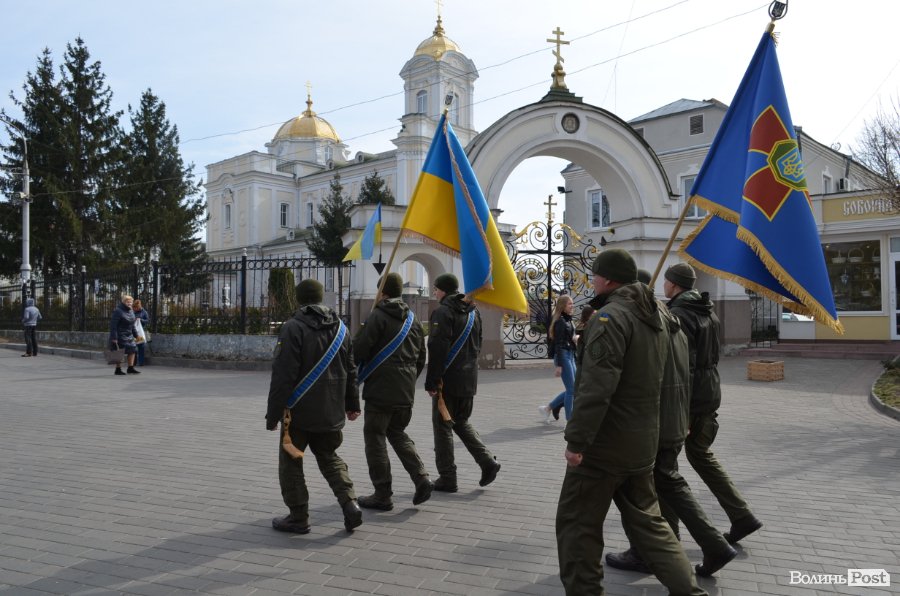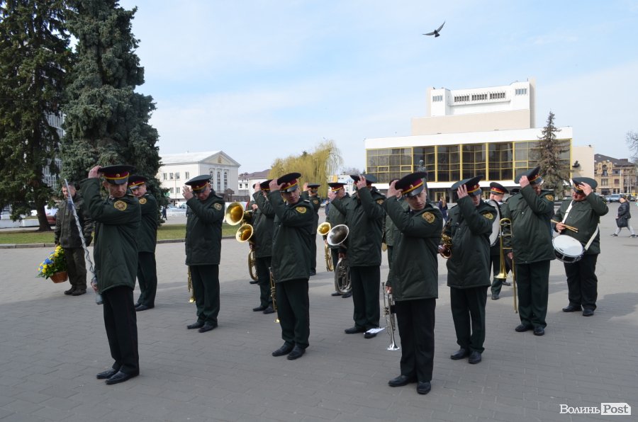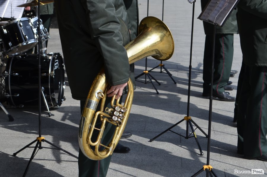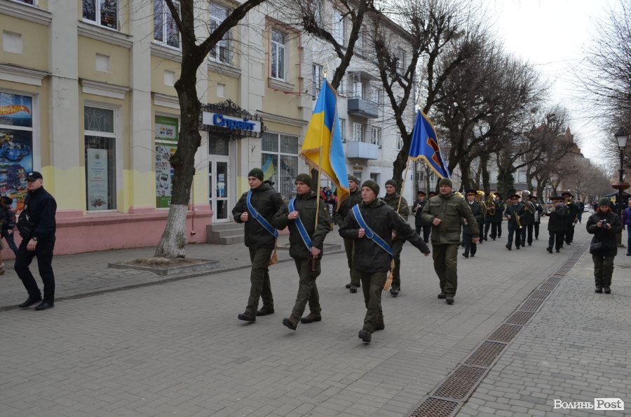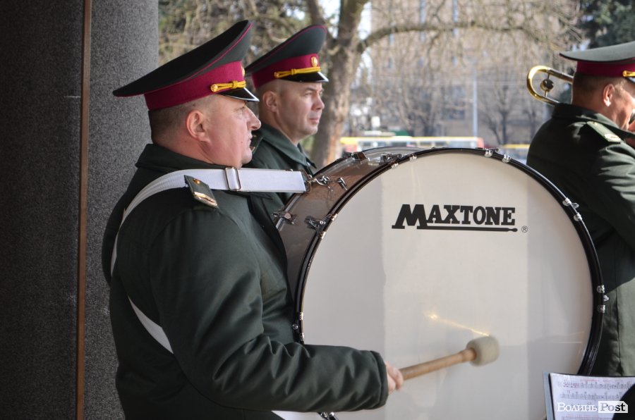 25 березня у Луцьку вулицею Лесі Українки марширував військовий оркестр з нагоди 5-ї річниці Національної гвардії України.