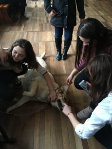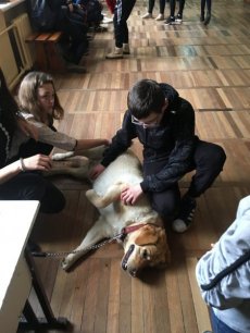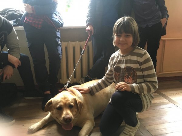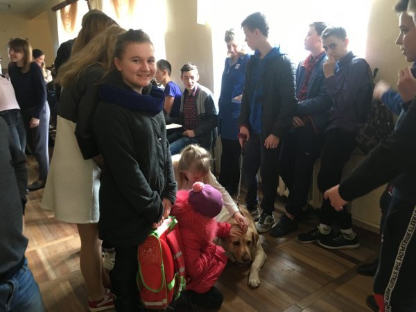 На виставку зі своїм лабрадором завітала й місцева знаменитість – Марійка Мовчан зі своїм другом, учнем 8-г класу Максимом Нагорним. Та справжньою знаменитістю того дня стала не юна «дипломатка», яка листується з монархами, керівниками держав та іншими світовими знаменитостями, а собака Папі. Лабрадору відразу вдалося завоювати увагу і симпатію учнів, викликати хвилю позитивних емоцій.
