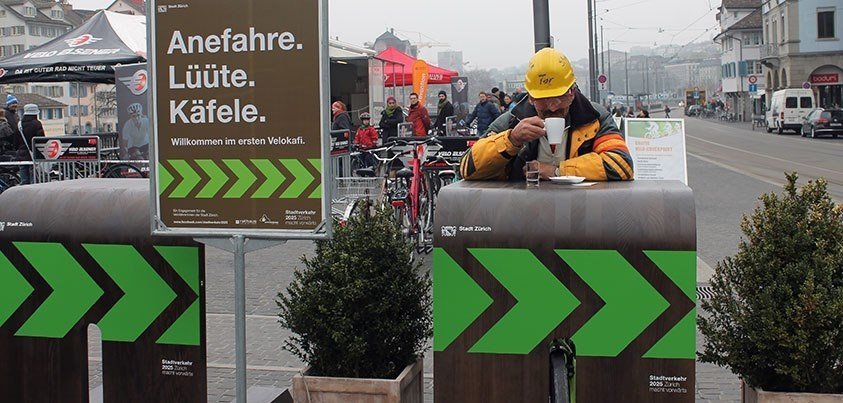 Щоб підтримати постійно зростаючу кількість велосипедистів у Швейцарії, Цюріху, влада міста спільно з дизайнерами придумала для велосипедистів спеціальне кафе. Сервіс, що отримав назву «Велокафе», дозволяє велосипедистам перекусити або просто випити чашечку кави буквально на ходу, не розлучаючись зі своїм залізним конем, за спеціальною стійкою.