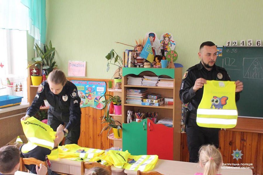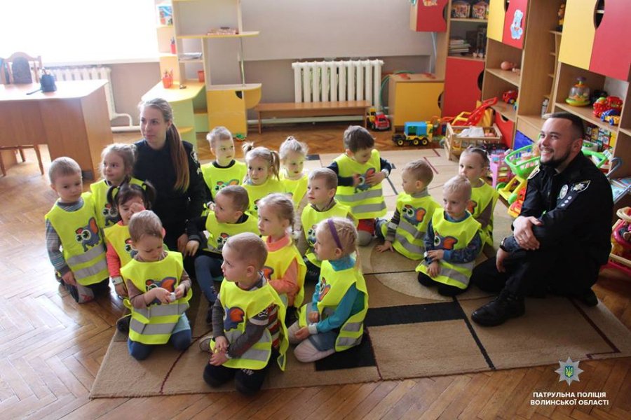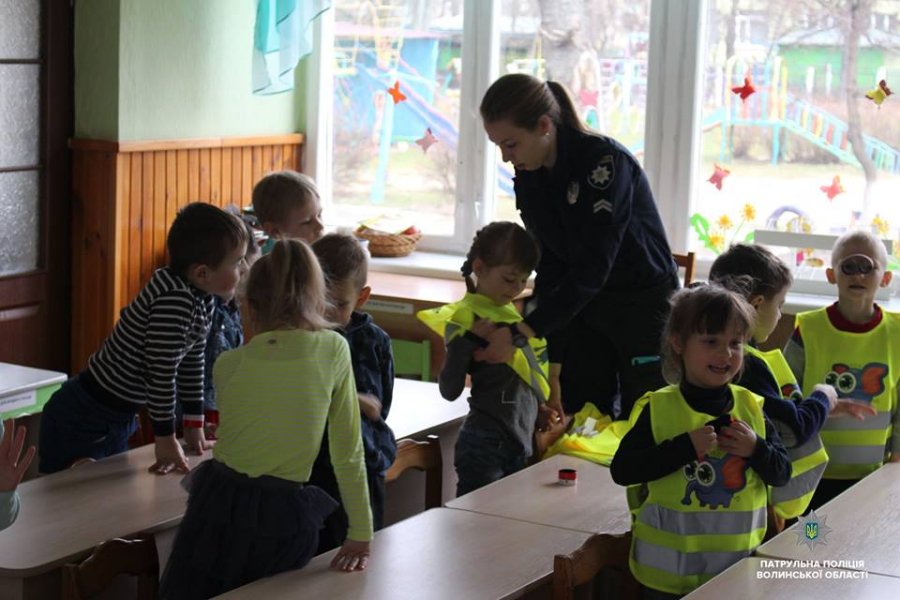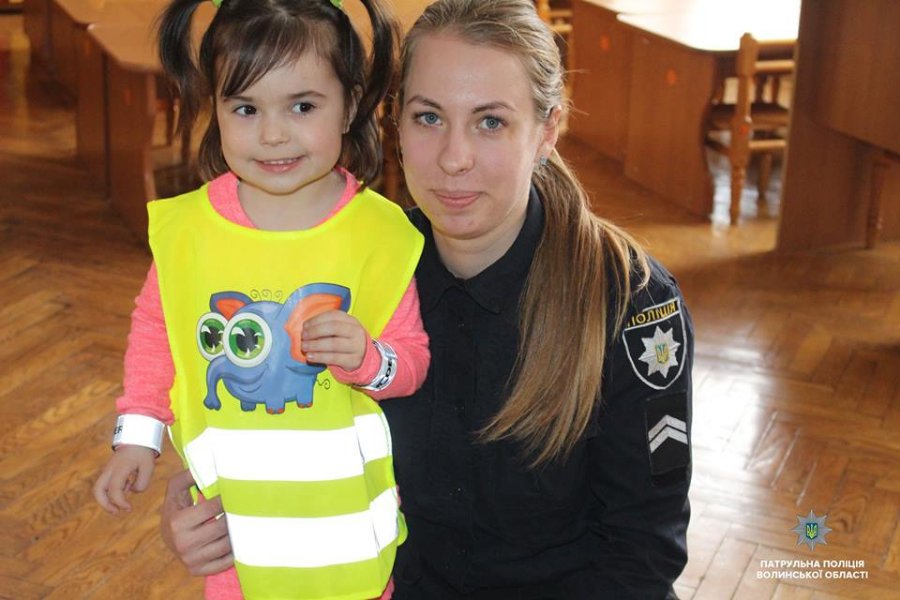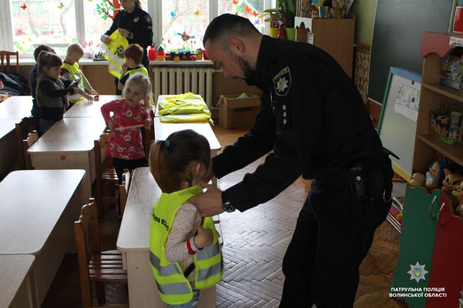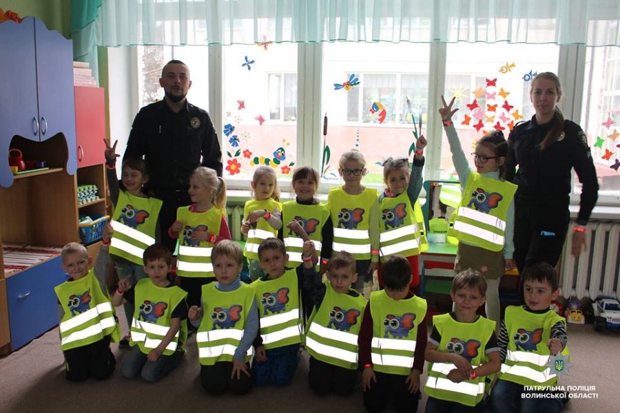 У луцьких дитсадках №17 та 39 патрульні допомогли дітям стати видимими для автівок у темну пору доби.