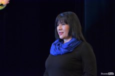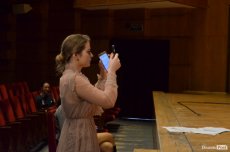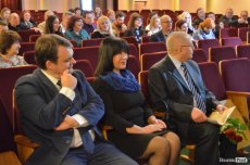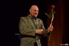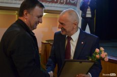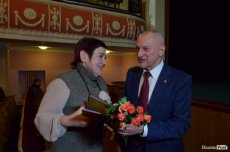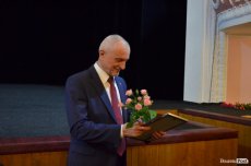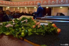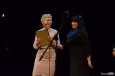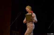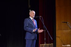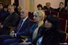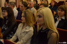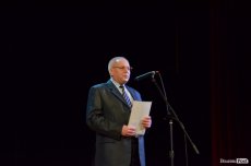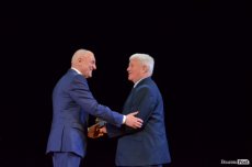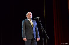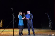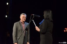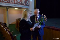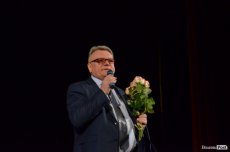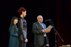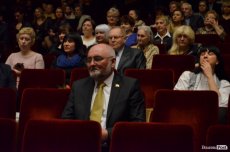 «Не будучи, ані актором, ані людиною мистецтва, я розумію, яка ваша професія непроста, скільки енергії і сили волі вона вимагає», – каже Савчено і щиро вітає усіх працівників театру з професійним святом, вручає відзнаки і квіти.