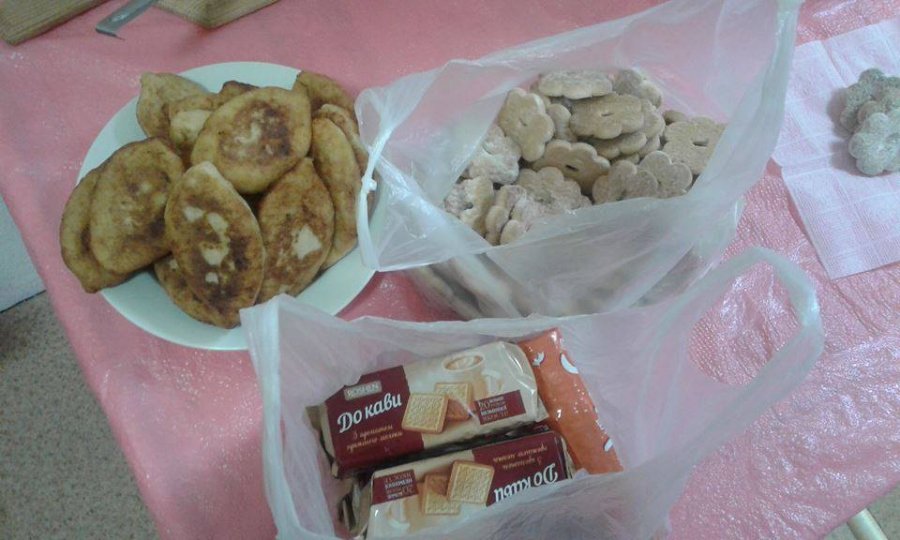 А ще мешканці міста відгукнулися на пропозицію поділитися їжею із тими, хто цього потребує. Ми отримали яблука, печиво, булочки, пиріжки з капустою, цукор, консервацію від небайдужих людей. Все це тут же роздавалось всім, хто приходив за обідами.