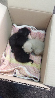 У Луцьку невідомі викинули у сміттєвий бак коробку, в якій було троє кошенят.