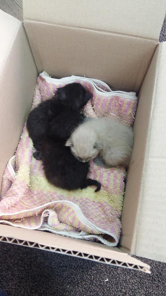 Автор допису розповідає, що кошенят на смітник, ймовірно, викинула молода пара. Наразі кошенят відгодовують та шукають для них господарів.