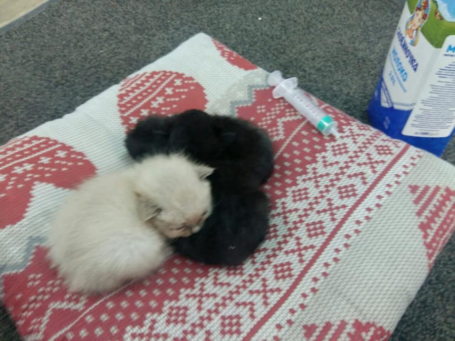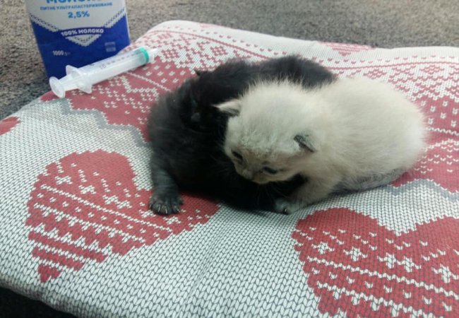Це ж ким у цьому житті слід бути, щоб видивитись найпорожніший сміттєвий бак, та опустити на дно коробку... Коробку із трьома маленькими живими кошенятами, лиш очки повідкривали, кругленькі, повненькі, але голодні, самі ще не їдять. Усі "пацики". Медичний шприц та чуйні панянки з магазину "Свій час" по пр. Волі, 15 наразі виконують роль кормлячої кішки-матері.