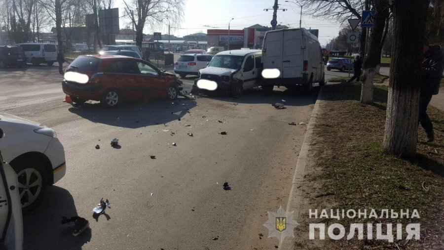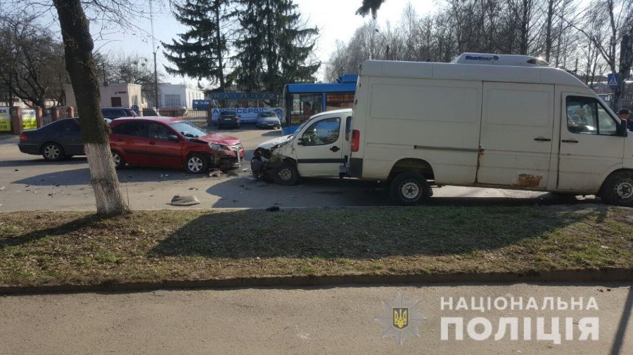 Так, близько 16 години 54-річний житель Луцька, водій Fiat Doblo, поблизу перехрестя з круговим рухом на вулиці Курчатова виїхав на смугу зустрічного руху, де зіткнувся з автомобілем Volkswagen LT 35 під керуванням 52-річного рівнянина та автомобілем KIA Rio, за кермом якого перебував 26-річний житель Рівного.
