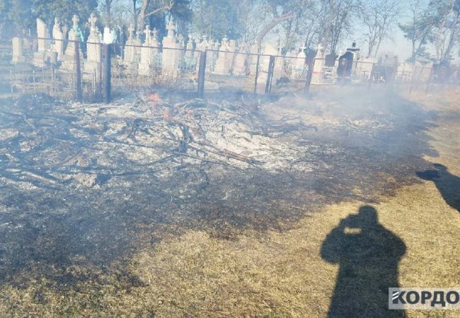 На місце події виїжджали рятувальники. Пожежа знищила 0,2 га посуші та була загроза перекидання вогню на кладовище, - пише Кордон.