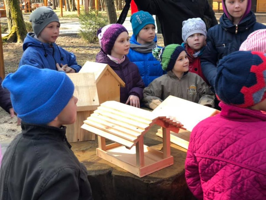 Місцеві лісники подарували дітям годівниці для птахів та шпаківні, які вихованці пообіцяли повісити біля притулку та піклуватися про пташок.