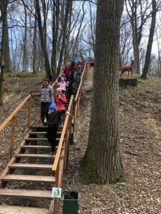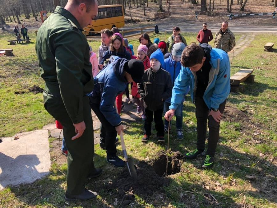 Дітлахи висадили кущі калини біля криниці разом з лісівником, а потім помандрували до вольєру з дикими тваринами.