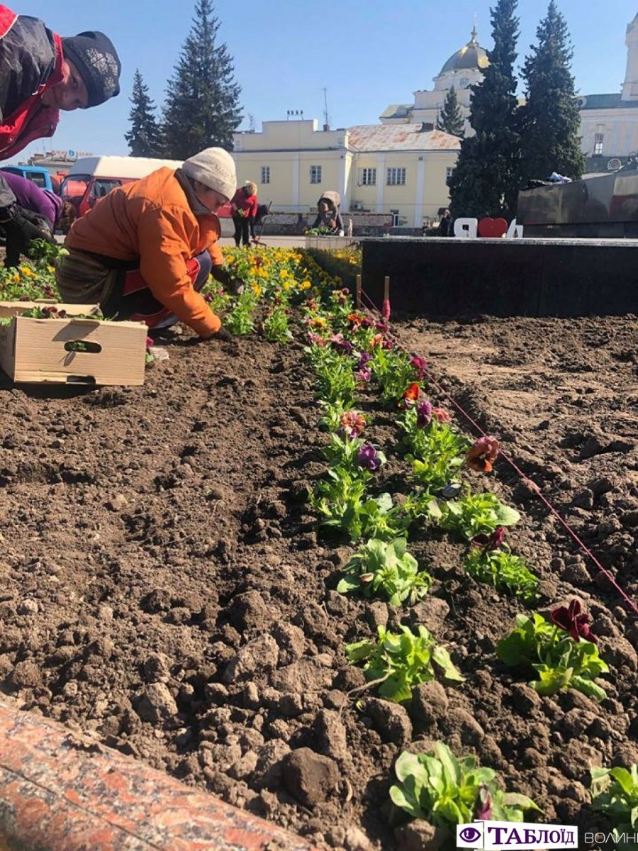 У центрі Луцька почали висаджувати квіти. ФОТО