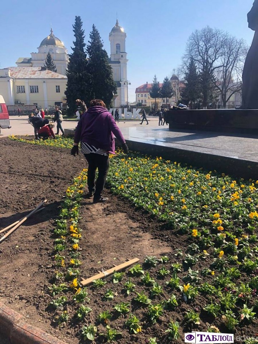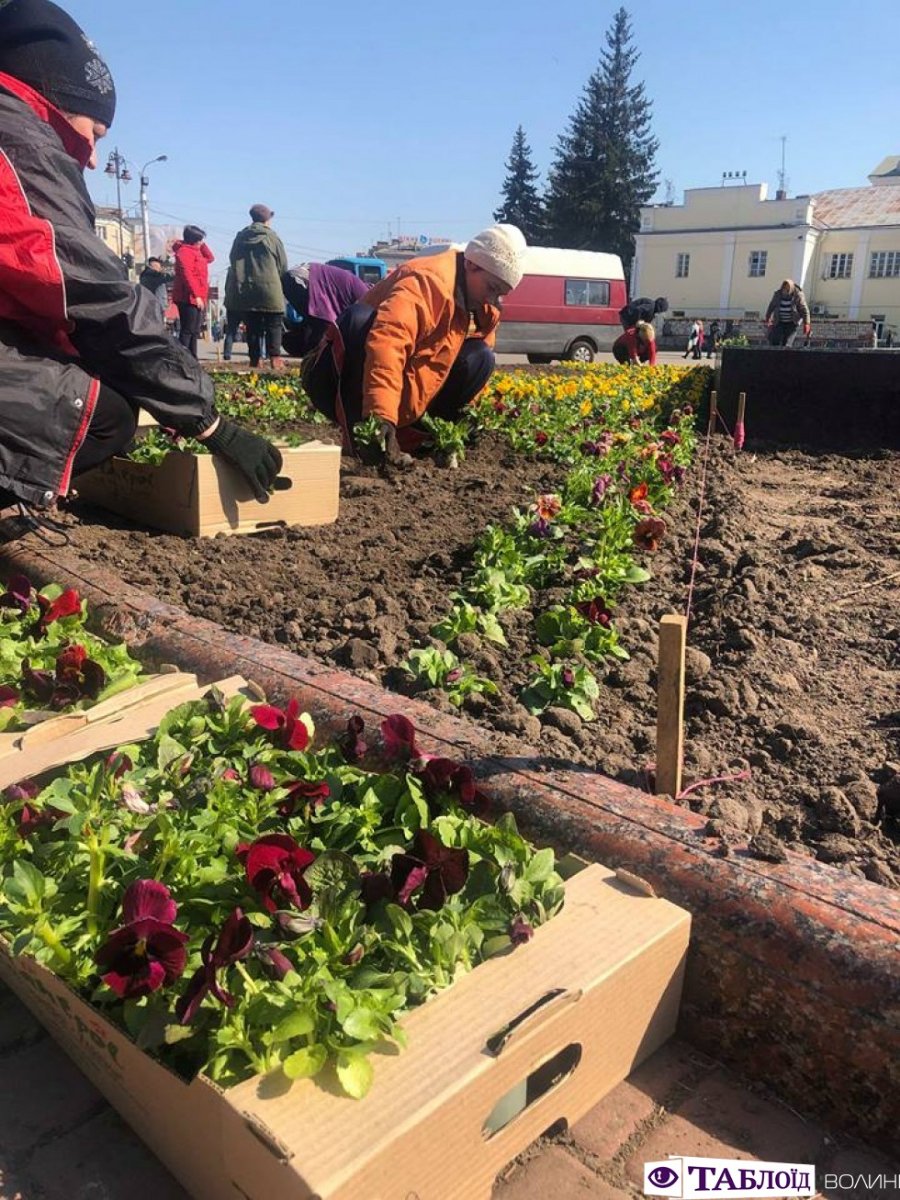 В обласному центрі Волині вже відчувається весна – на Театральному майдані почали висаджувати квіти.