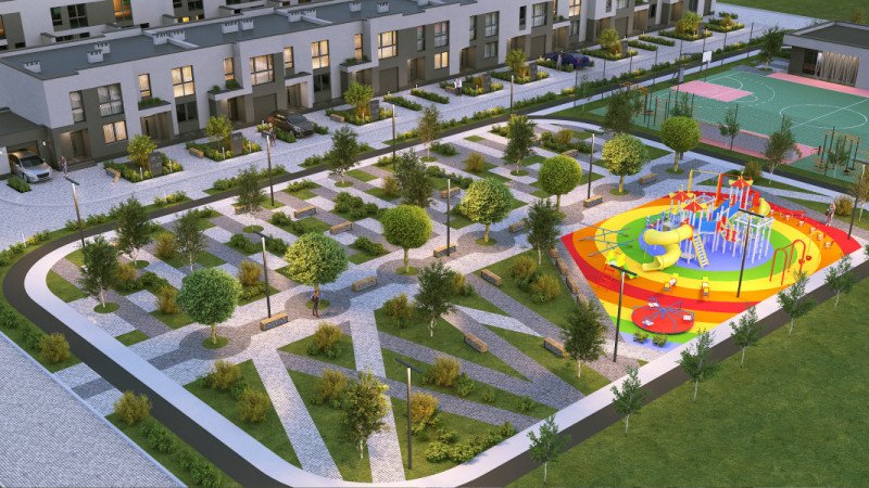 Часи, коли усю вільну землю біля будинків, заганяли в асфальт поступово відходять в минуле. Принаймні, це стосується заміської забудови. Там забудовники все частіше облаштовують парки і сквери, дитячі та спортивні майданчики. Також на території житлових комплексів відкривають кафе, магазини, салони краси, дитячі садки. Усе для того, щоб мешканці мали всю необхідну інфраструктуру на місці.