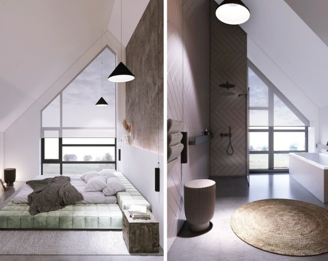 Однак, високі та мансардні вікна можуть стати гарною альтернативою. Продумане штучне освітлення – це добре, але сонячне воно не замінить. Все-таки приємніше прокидатись від справжнього проміння.
